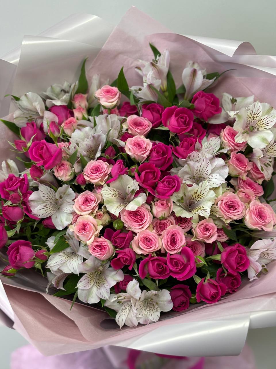 Большой ,обьемный букет из кустовой розы и альстромерии